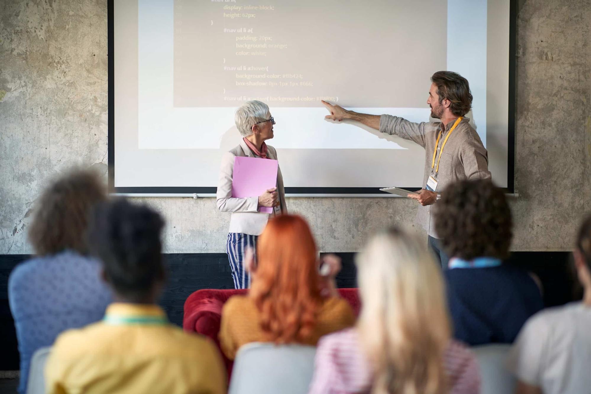 Les organisateurs d’événements et les formateurs peuvent transformer les présentations traditionnelles en expériences accessibles. Par exemple, ils peuvent privilégier l’accessibilité des documents sur tous les formats, utiliser des palettes de couleurs respectant les ratios de contraste requis et partager des modules et des diapositives avant les présentations afin que les apprenants puissent se familiariser avec le contenu et utiliser leurs outils d’accessibilité préférés.