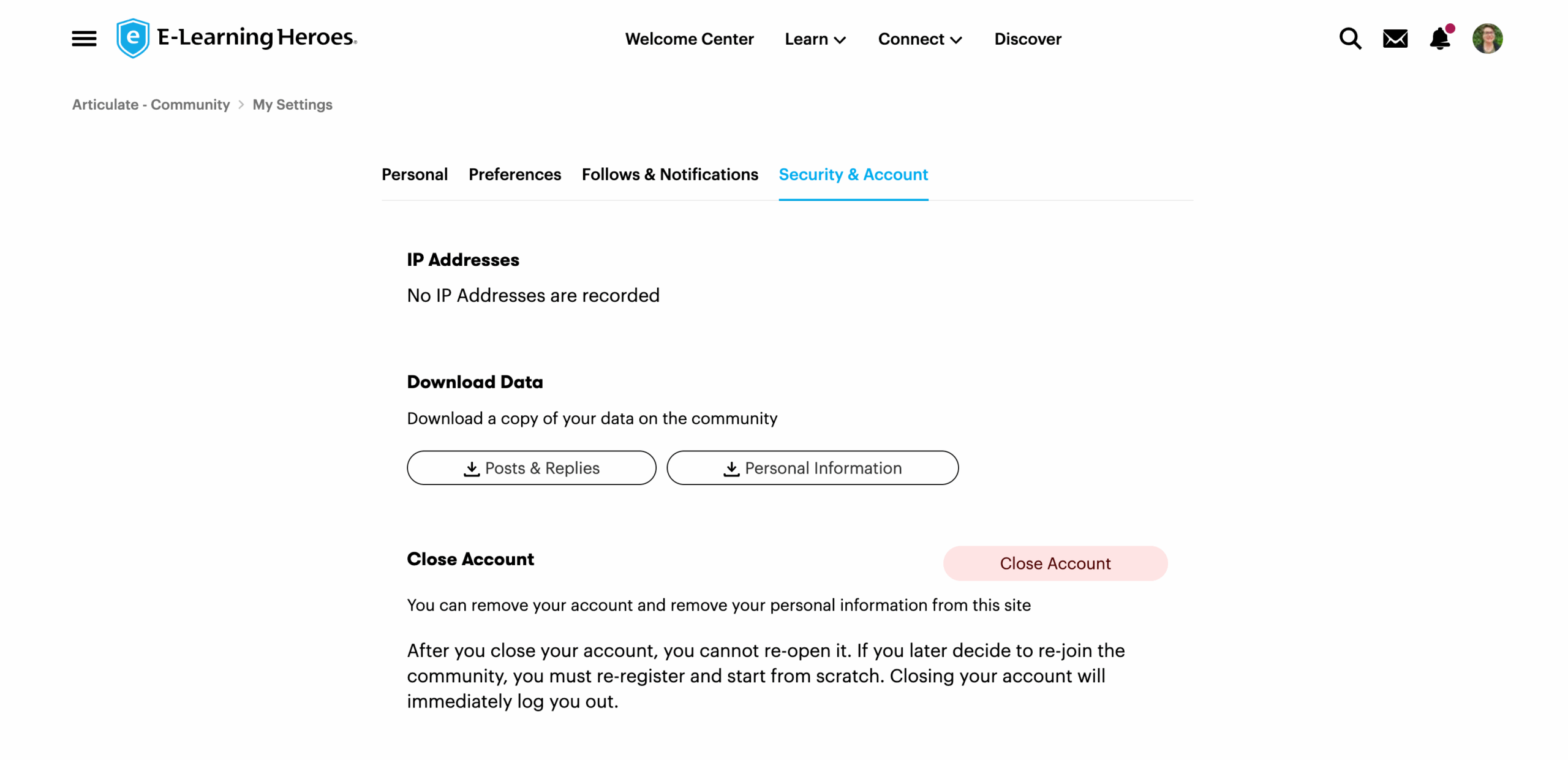 Votre profil utilisateur E-Learning Heroes est bien plus qu’un simple avatar : c’est un formidable soutien à vos objectifs de développement en e-learning. Les membres qui optimisent leur profil ont plus de facilité à entrer en contact avec des pairs bienveillants et obtiennent généralement des réponses de meilleure qualité à leurs questions et publications.