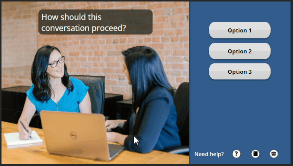 - L’accessibilité. Idéalement, tous les modules sont conçus en tenant compte de l’accessibilité, mais cela n’a pas toujours été le cas. La conformité aux normes d’accessibilité est aujourd’hui une préoccupation majeure pour les concepteurs e-learning, bien plus qu’il y a quelques années. Le marché a évolué, et cette évolution s’accompagne d’une prise de conscience accrue et d’une volonté plus forte de créer des formations en ligne accessibles. Les interactions au survol de la souris posent parfois problème, notamment pour les utilisateurs naviguant au clavier.